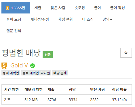 배낭에 넣을 수 있는 물건들의 가치의 최댓값을 구하자.