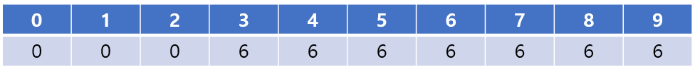 총 6개의 물건이 있고 가방에 담을 수 있는 최대 무게는 9이다. 먼저 무게가 3이고 가치가 6인 첫 번째 물건으로 s값을 갱신하면 다음과 같이 될 것이다.