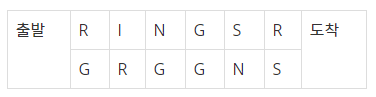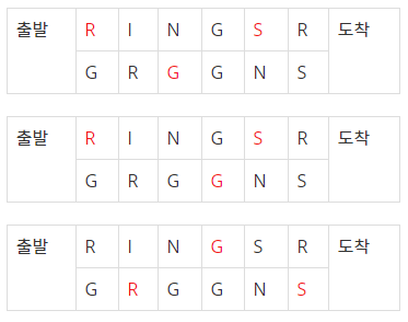 두루마리의 문자열이 "RGS"라면 아래와 같은 돌다리는 다음 세가지 방법으로 건널 수 있다. 이러한 경우의 수를 구하자.