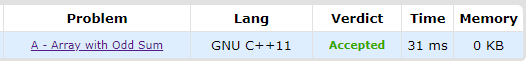 필요하다면 i번째 원소를 j번째 원소로 대체하여, 배열의 원소를 모두 더한 수가 홀수가 될 수 있는지 판별하자.