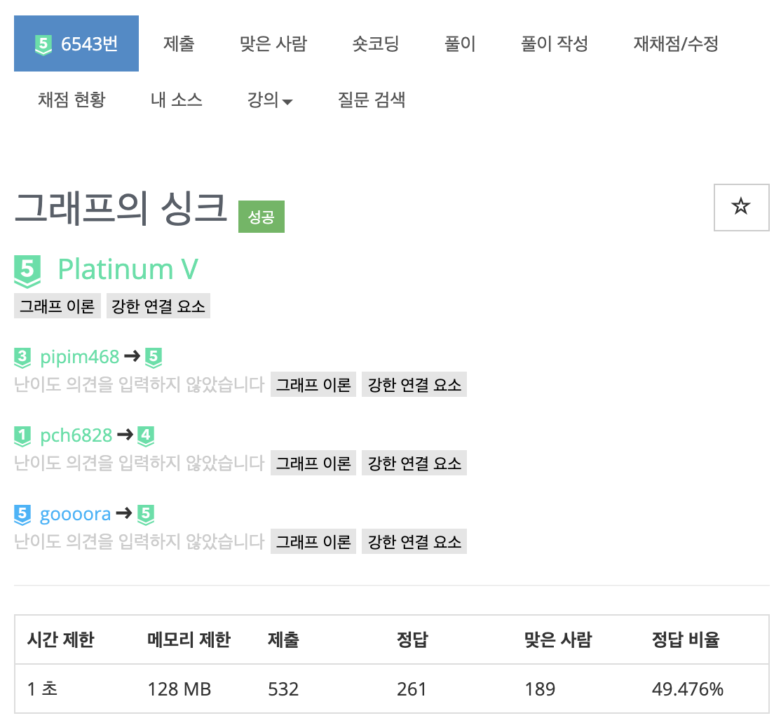 1. 그래프 이론 중, 방향 그래프에서 싱크 정점(sink vertex)이란 나가는 간선이 없는 정점(outdegree가 0)이다. (문제의 싱크 노드의 정의와는 다르다.) 만약에 여러 SCC로 이루어진 그래프에서 싱크 SCC가 있다면, 그걸 구하는 것이 이 문제의 목적일 것이다. 즉, 한 SCC에서 다른 SCC로 가는 길이 없는 SCC를 구하는 것이다.