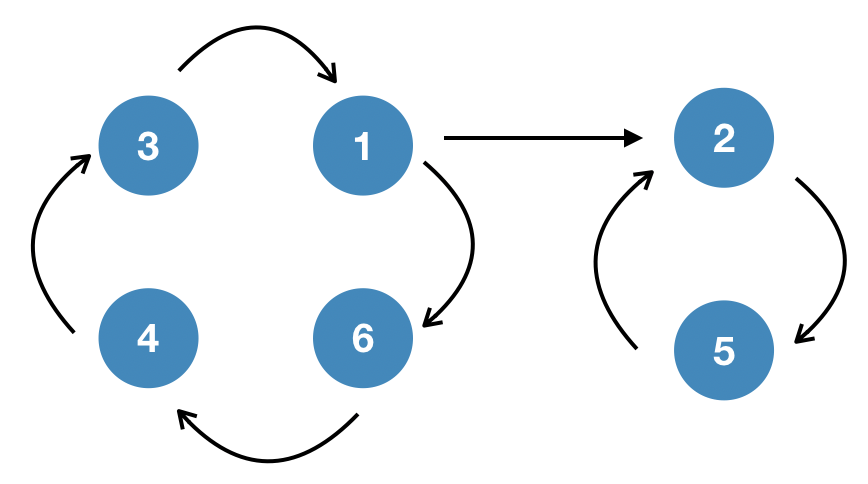 2. 즉, SCC로 이루어진 서브 그래프들을 구하고 그러한 서브 그래프간의 연결이 있는지 확인하면 된다. 코사라주 알고리즘을 사용하면 SCC는 쉽게 구할 수 있을 것이다.