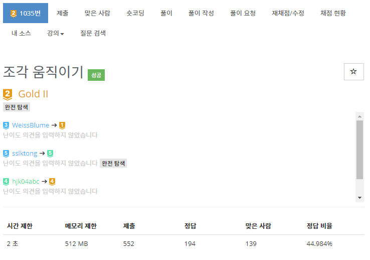 3. 모든 조각이 서로 인접해있다면 조각 별 이동거리를 합하여 최소 이동거리를 갱신한다.