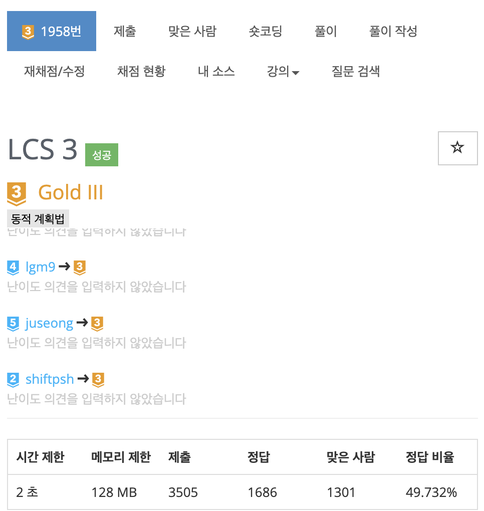 1. 백준 9252번 - LCS 2의 풀이와 비슷하다. 2차원 배열에서 3차원 배열로 DP를 적용하자.