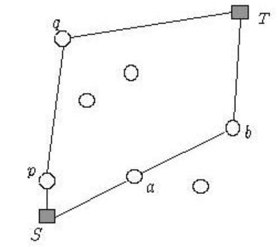 다음 그림과 같이 S(=출발지: {0,0}), T(=도착지: {10000,10000}), 그리고 N개의 경유지가 있는데, M번을 경유하여 S에서 T로 가기위해 필요한 연료통의 최소 용량을 구하자.