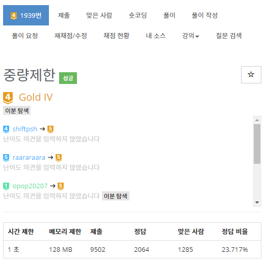 1. 이분탐색으로 중량을 구한 후, dfs나 bfs로 검증한다. 두 가지 방법으로 테스트해 보았다.