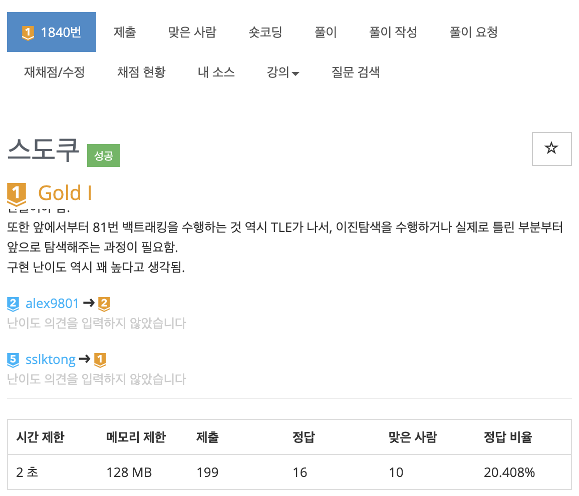 1. 1~81번까지 올바른 입력인지 확인하기에는 시간제한에 걸린다. 이분탐색으로 확인할 단계 수를 줄이든, 틀린 위치부터 단계를 거슬러 올라가면서 구해야한다. 이분탐색은 72ms 정도가 걸린다. 후자의 방법은 0ms.