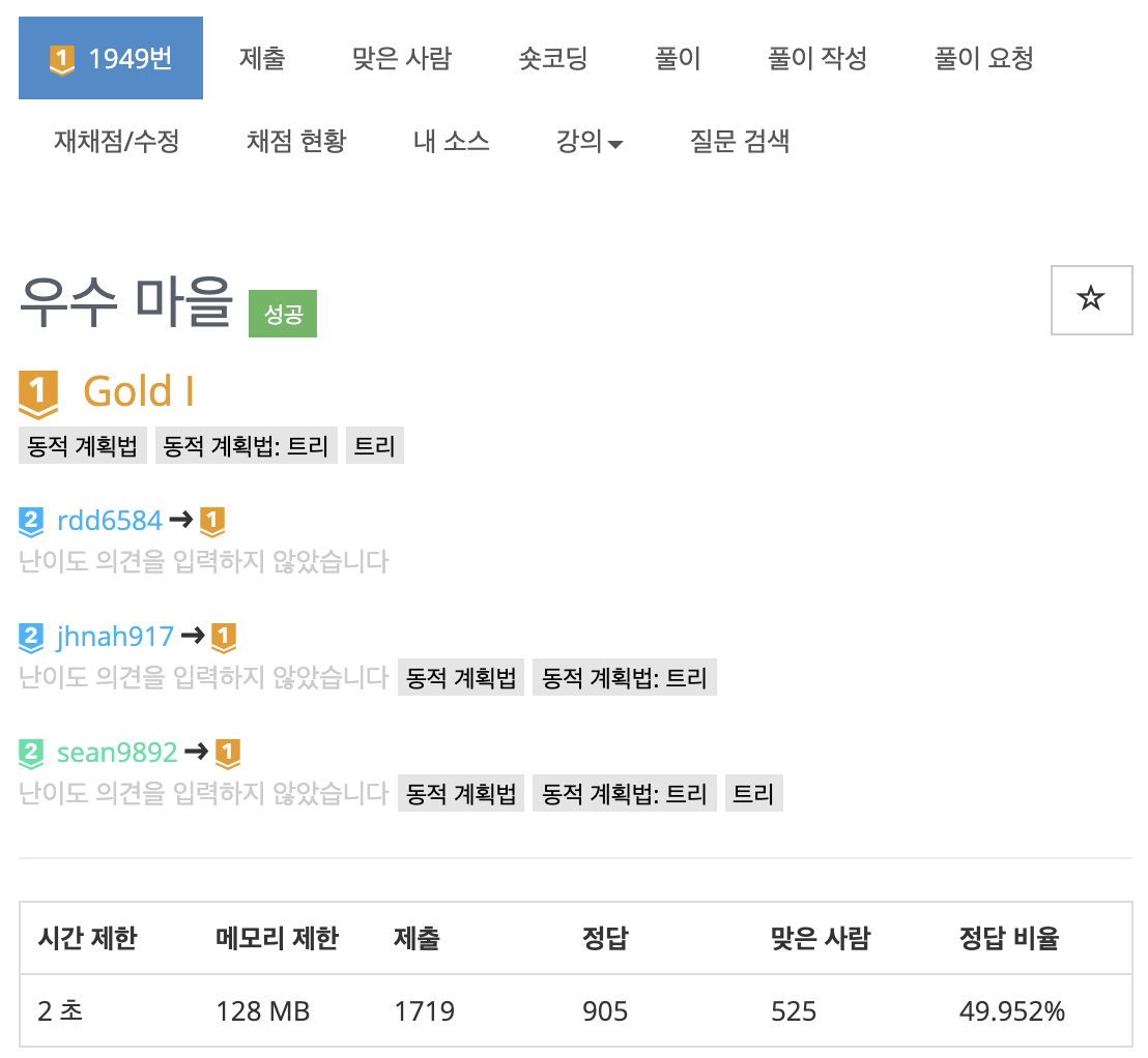 3. 우수마을과 인접한 마을만 우수마을에서 제외시키는 조건만 가지고, 간단히 DP로 해결하자.