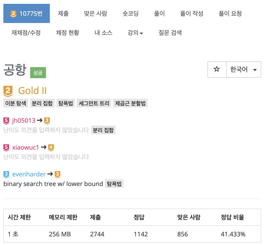 2. 도킹할 게이트의 위치를 찾기 위해서 하나의 배열이 필요하다. i번째 게이트가 도킹에 사용되었다면, 다음으로 도킹 가능한 게이트를 가리키는 용도이다. Disjoint-set의 루트노드를 찾는 함수를 사용하면 될 것이다.